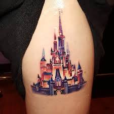 It is both simple and sophisticated with the design giving it a mature feel. It seems that many tattoo enthusiasts choose the disney castle design because it perfectly symbolizes the walt disney enterprise. Back castle tattoos 8. Center for most disney castle tattoos is cinderella s castle which represents magic courage love and joy.